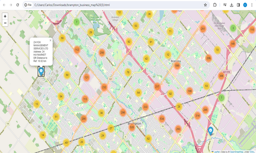 This project was built in Python and it condenses the Brampton’s commercial directory into an interactive map, highlighting proximity and details with a click
